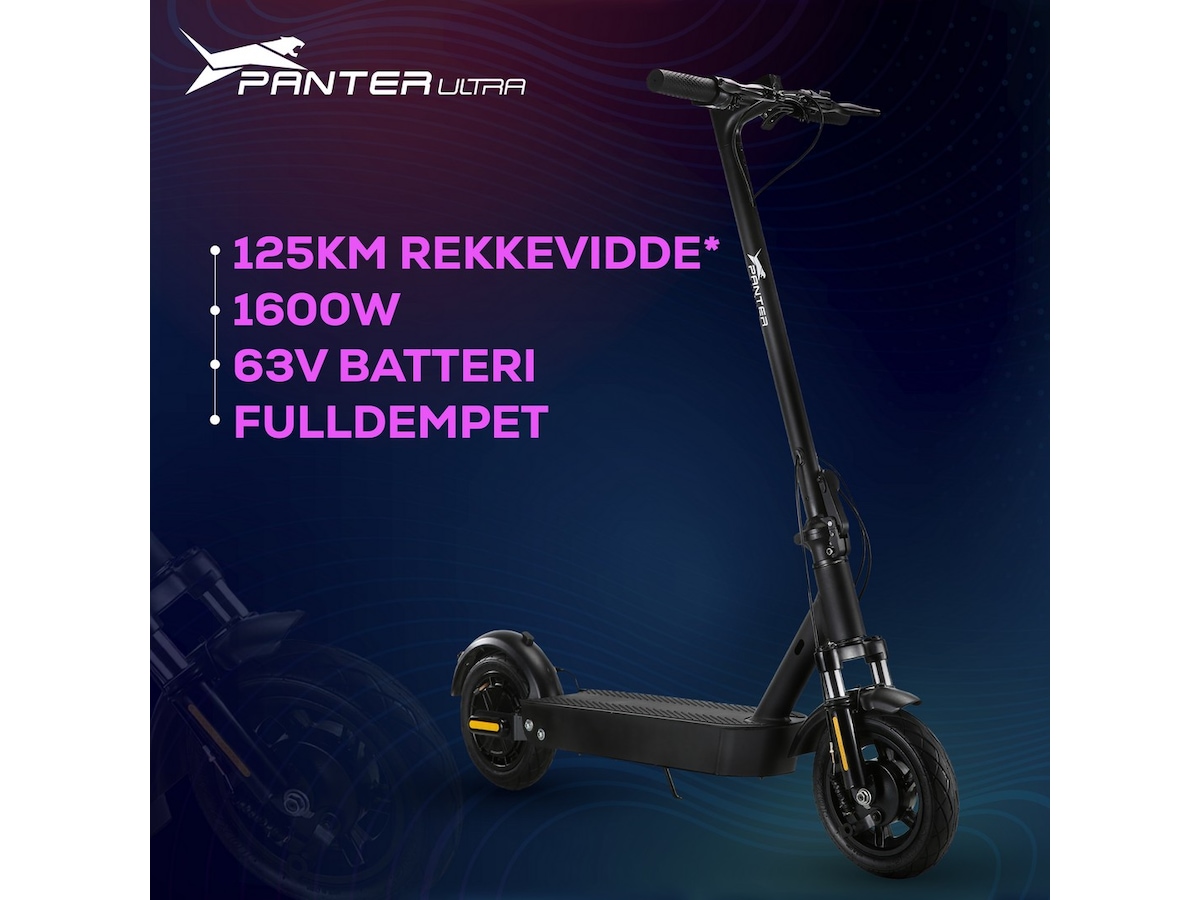 Panther Ultra tar uppförsbackar som en bris med en kraftfull 1600W motor (Max effekt). Skotern körs på ett 63 volt system och är utrustad med en motor med högt vridmoment - specialiserad för norska förhållanden. Ultra kommer med bakhjulsdrift och full dämpning för optimal körkomfort. Detta i kombination med ett trippelt bromssystem (främre trumbroms, bakre skivbroms och elektrisk, regenerativ motorbroms) gör att skotern sticker ut från konkurrenterna.