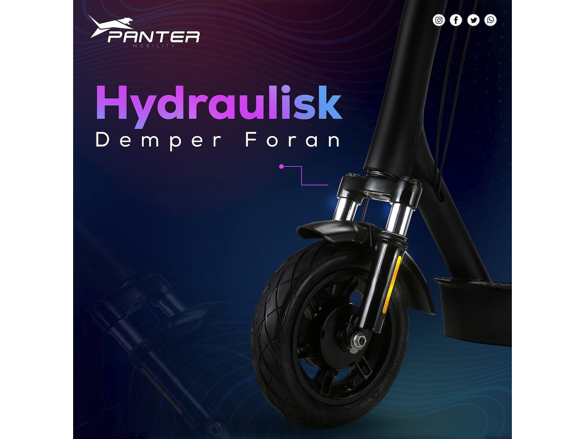 Panther Ultra är helt dämpad för att ge optimal körkomfort. Den främre hydrauliska dämparen absorberar gupp eller ojämn mark. Den justerbara bakre dämparen är en "coilover"-dämpare. Dämparen bär det mesta av förarens vikt och kan justeras därefter. Ett bra dämpningssystem ger även bättre grepp på ojämnt underlag, vilket gör elskotern lättare att kontrollera och säkrare under svåra förhållanden. Scootern är utrustad med punkteringsfria däck, men med bra dämpare säkerställs ändå komfort!