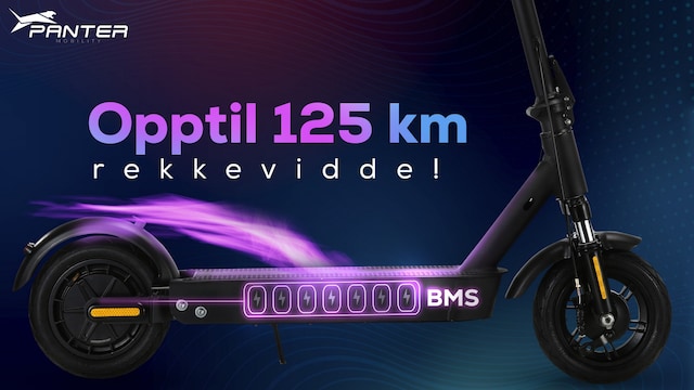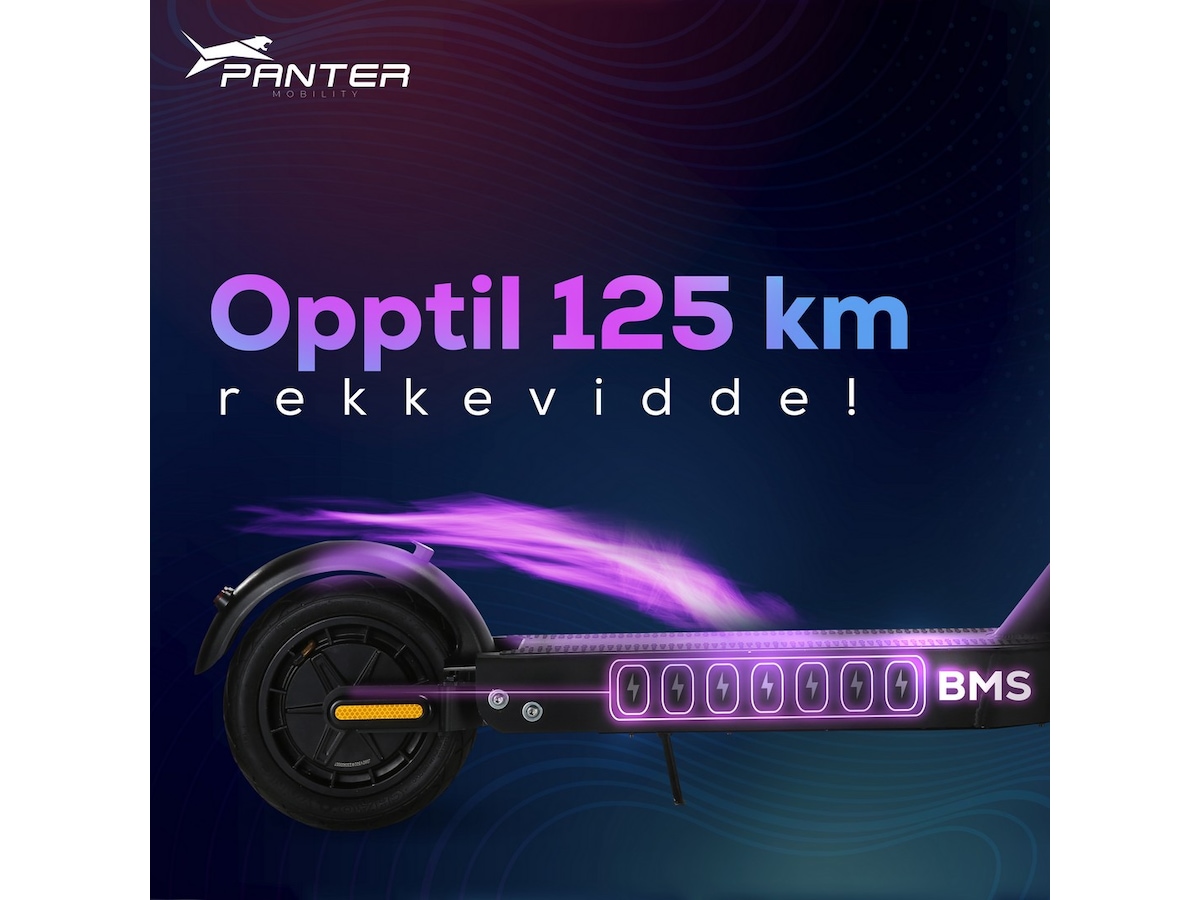 Panther Ultra har ett 63V20Ah batteri med en total kapacitet på 1258WH. Detta ger en optimal räckvidd på extrema 125 km*. Motorn har en maximal verkningsgrad på över 90 %, vilket maximerar räckvidden baserat på batteriets kapacitet. Batteriet är uppbyggt av klass A-celler med lågt inre motstånd, avancerat BMS (battery management system) och bra konstruktion, vilket ger hög driftsäkerhet och kvalitet. Scootern använder 21700 celler, vilket gör skotern extremt lätt i förhållande till sin räckvidd. Jämfört med Panter Max Long Range, som har en 45 km kortare optimal räckvidd, är Panter Ultra bara ett kilo tyngre.