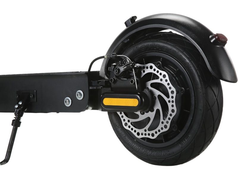 Den fysiska bromsen på framhjulet är en trumbroms. Denna typ av broms är mycket tillförlitlig eftersom det är ett slutet system. Dessutom har den en skivbroms på bakhjulet, och en elektrisk regenererande broms i motorn. När du trycker på bromsspakarna kommer regenereringen att slås på och skicka tillbaka ström till batteriet.