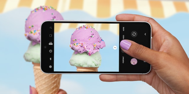 Galaxy S23 FE är utrustad med några av de senaste Pro Grade-funktionerna. Det innebär bland annat att du kan justera värmen i hudtonen på selfies, ge videor en ännu mer filmisk känsla och fånga flera vinklar i samma tagning. Så bara låt din kreativitet flöda!