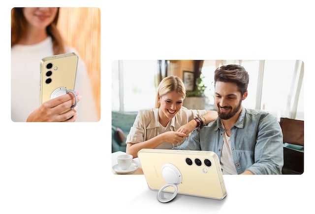 Säkra din Samsung telefon med Clear Gadget Cases mångsidiga grepp, som även fungerar som stativ för längre telefonsessioner och filmtittande på språng.