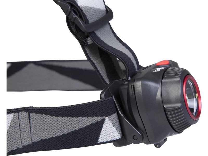 Denna kraftfulla pannlampa har två ljuskällor som tillsammans har fem olika ljuslägen för att passa allas behov. Tre olika ljuslägen i vitt ljus från från den främre glödlampan och två lägen från en ytterligare 0,5 W Nichia Röd LED-glödlampa. Den främre glödlampan har en lins som avger ett jämnt och klart ljus, och genom att vrida på ringen runt linsen justeras ljuskällans fokus från smal till bred. Vid maximal styrka har lampan en räckvidd på 150 meter. Genom den fria projektionsvinkeln kan du enkelt justera lampans riktning och vinkel.