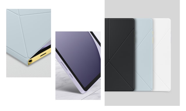 Oavsett om du kommer ikapp dina favoritprogram i liggande läge eller tar dig an en produktiv dag i stående läge, ser bokomslaget till att din surfplatta anpassar sig efter dina behov. Inbäddade magneter gör det enkelt att vika ihop det till ett origamiliknande stativ i två olika betraktningsvinklar.