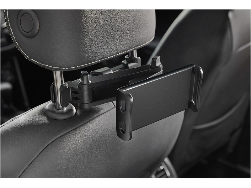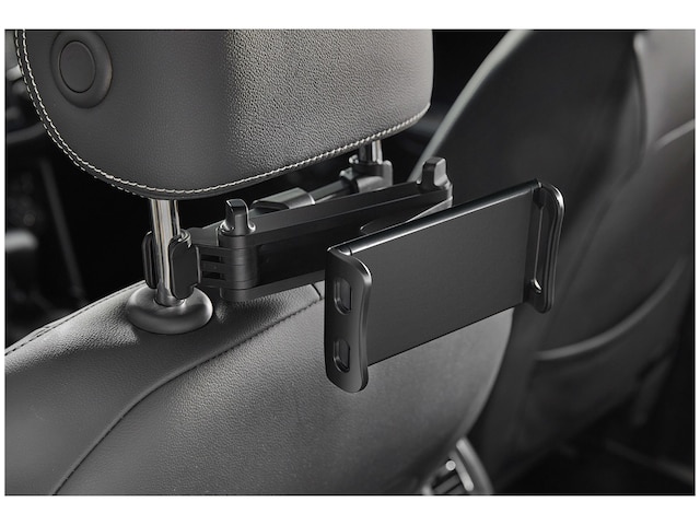 Solid och smart hållardesign för telefoner och surfplattor. Hållaren fästs enkelt på nackstödet på ett av framsätena i bilen. Den sitter stabilt genom att fästas på båda nackstödsstängerna.