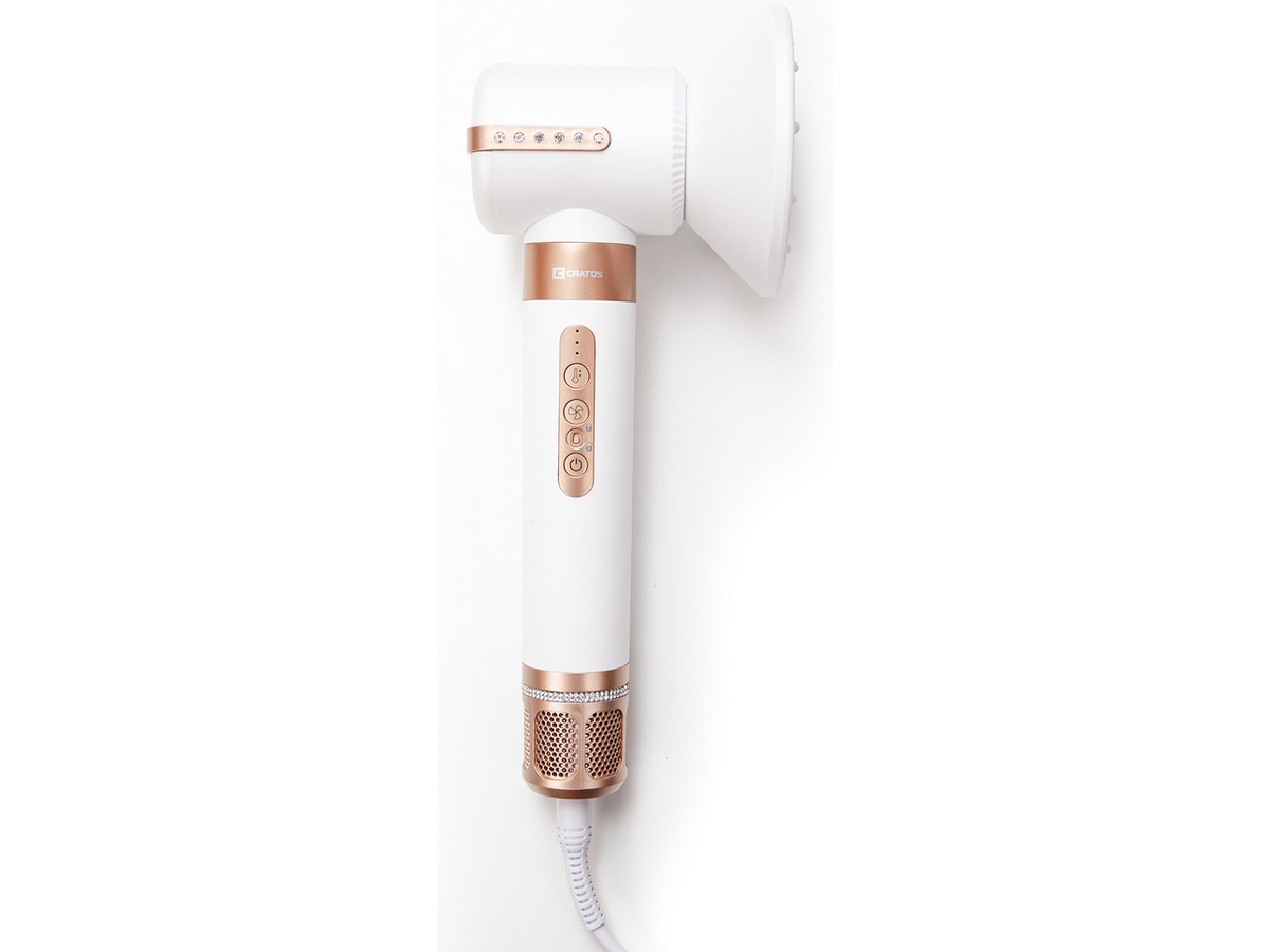 Med ny teknik ger motorn 110 000 rpm och 20 m/s lufttryck. Designad med en enstegslösning, är Cratos Aircurl lätt att använda och låter dig fortfarande uppnå salongsresultat. Den kraftfulla motorn säkerställer den populära coanda-effekten, och gör det enkelt att styla med tillbehören som följer med.