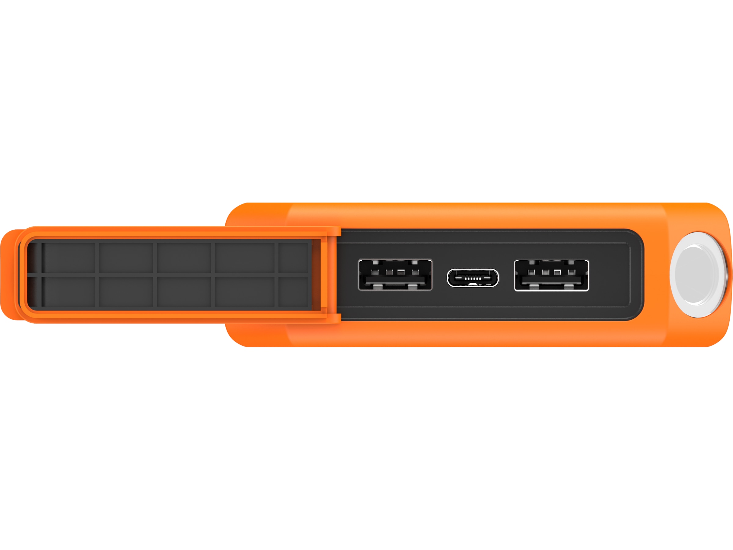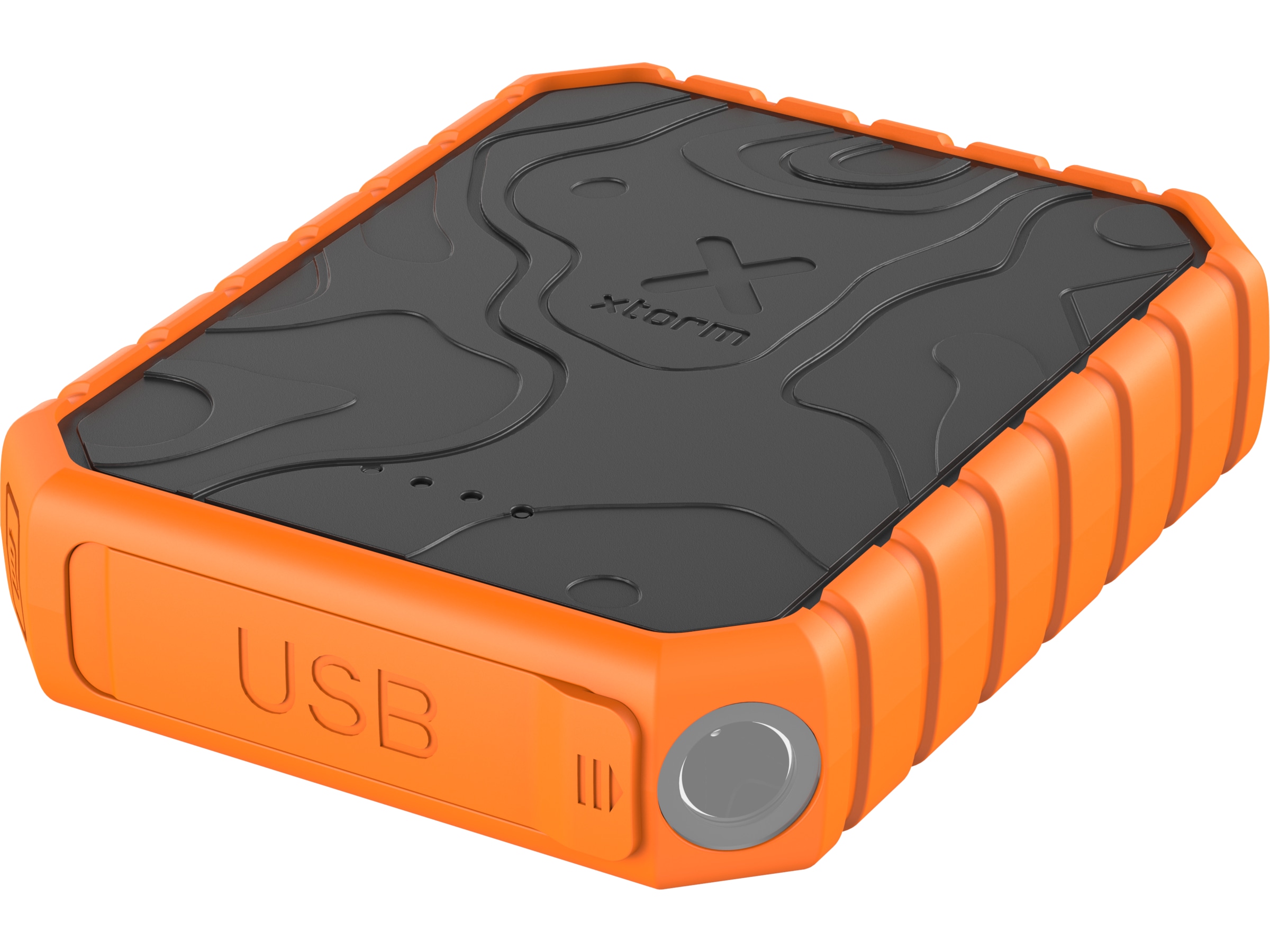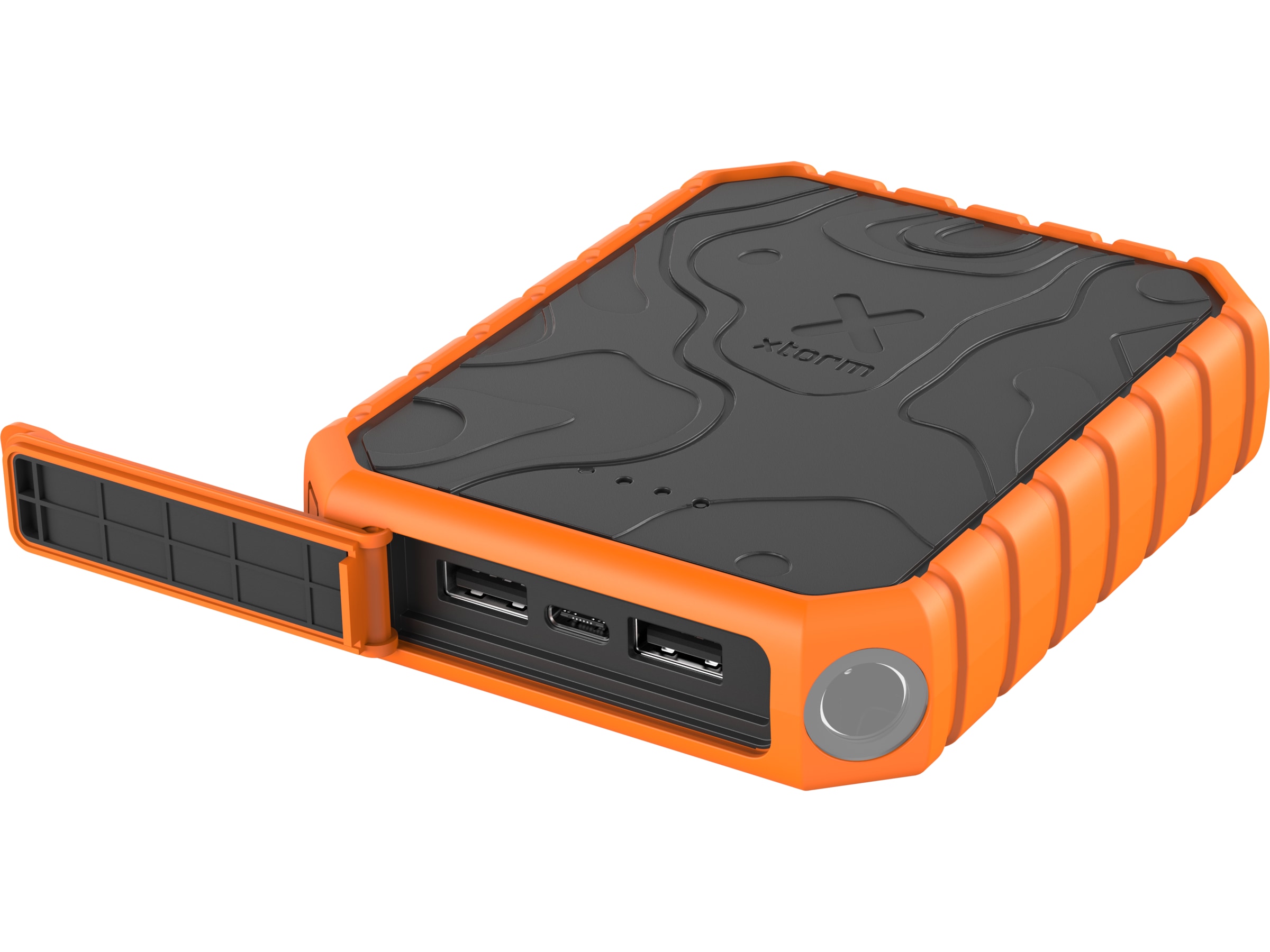 Xtorm Rugged Power Bank XR201 är designad med uppmärksamhet på detaljer, såsom den gummerade finishen som ger ett robust, stänksäkert hölje (IP65), med USB (C)-portarna väl skyddade. Gummihöljet på undersidan kan enkelt öppnas för att ladda din enhet via powerbanken. Den främre LED-indikatorn visar med en blick hur fullt XR201:s interna batteri är laddat.