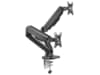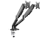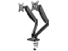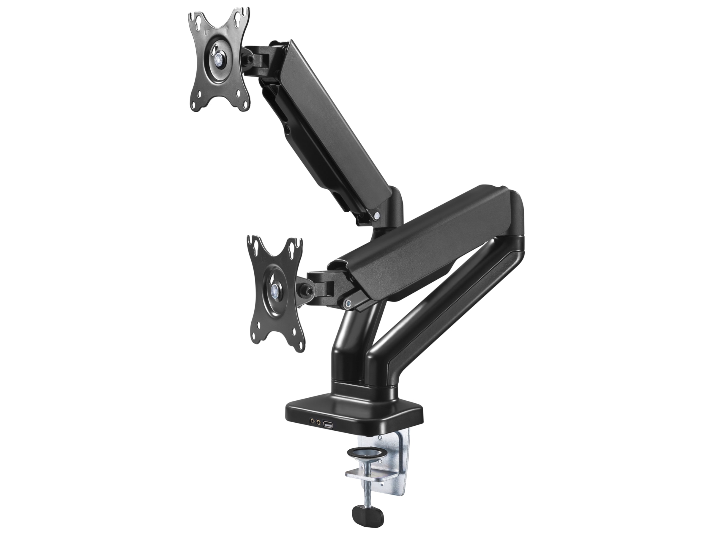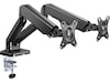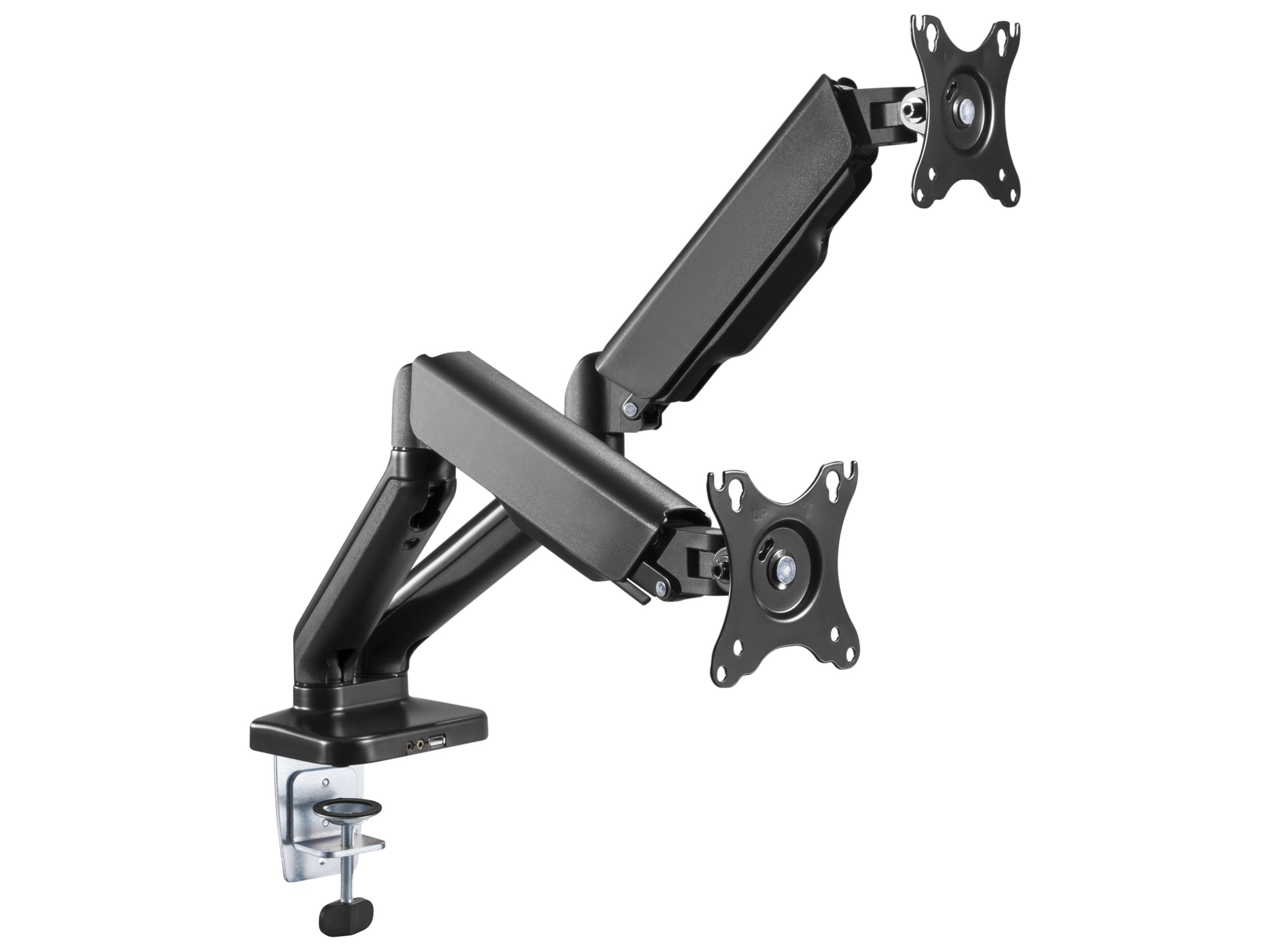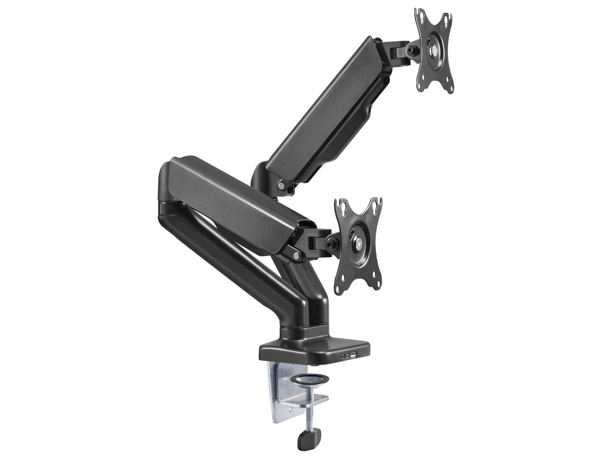 Monitorarmarna är utrustad med en gasfjäder och erbjuder en mängd justeringsmöjligheter för att minska trötthet i nacke och ögon samt hitta en bekväm arbetsposition. Du kan rotera varje skärm upp till 180 grader åt båda hållen, svänga dem med upp till 90 grader åt vardera sida och luta dem med upp till 90 grader uppåt eller nedåt. Oavsett om du har platta eller kurvade skärmar passar denna monitorarm båda typerna.