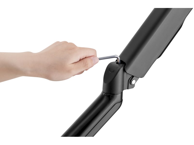 Monitorarmen är förinställd med den lägsta viktkapaciteten under produktionen, så för att skärmen ska sitta stadigt måste du justera fjäderspänningen med den medföljande insexnyckeln med skärmen monterad.