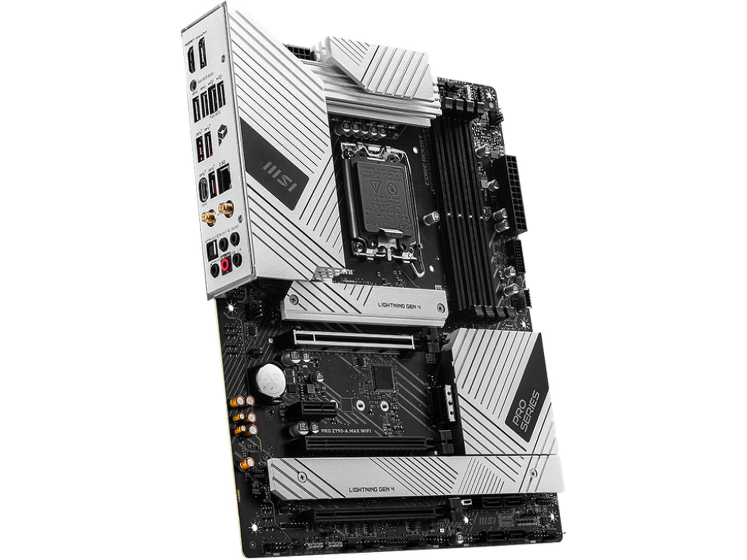 PRO Z790-A MAX WIFI erbjuder en enkel design med en harmonisk silverfärg som perfekt matchar vita och svarta PC-byggen. Den är konstruerad med många exklusiva funktioner från MSI, en bekväm Wi-Fi 7-lösning, och DDR5-optimering för Intel® Core™ 14:e och 13:e generationens processorer.