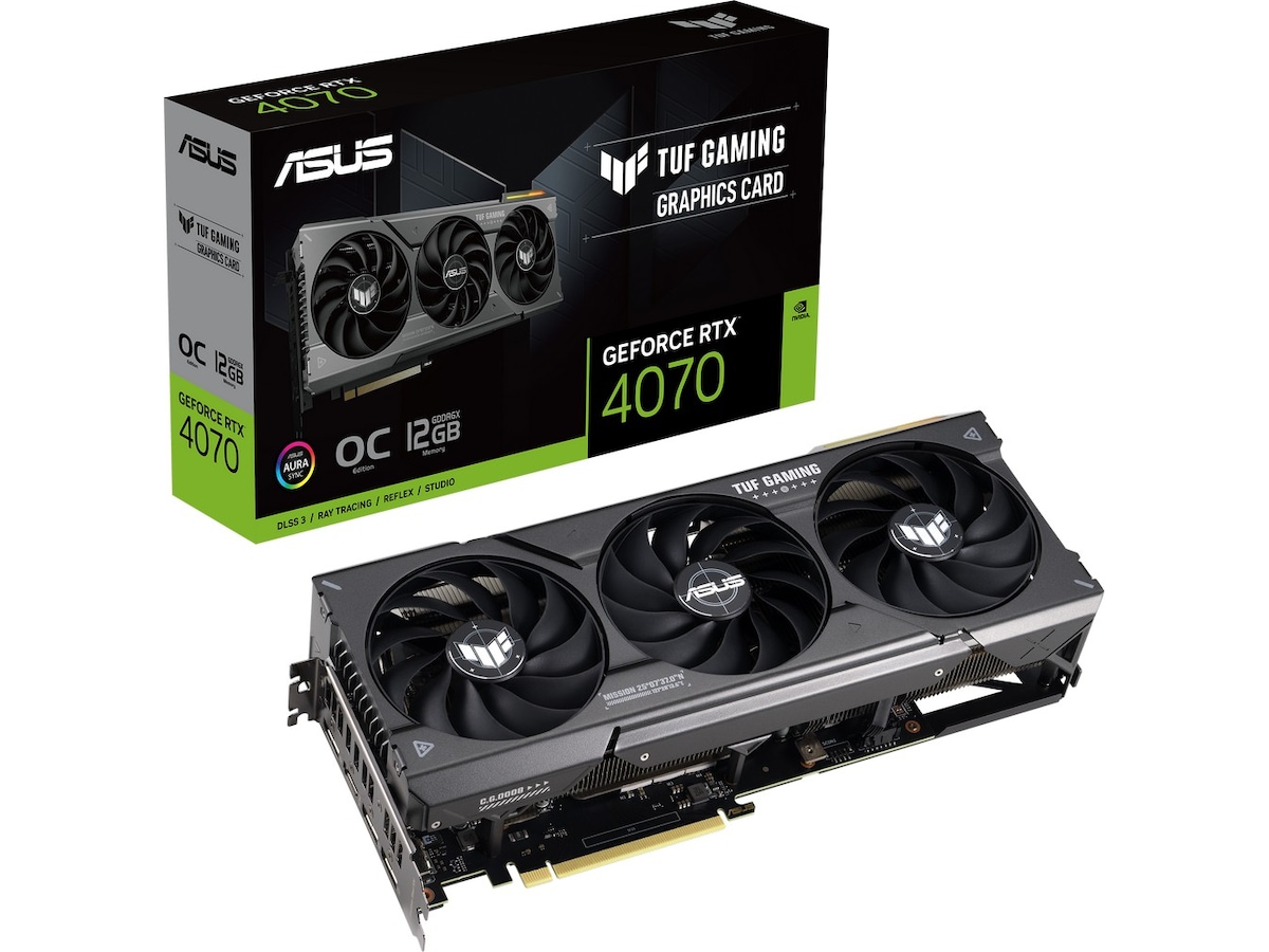 ASUS TUF Gaming GeForce RTX 4070 SUPER OC ASUS TUF Gaming GeForce RTX™ 4070 SUPER 12GB GDDR6X OC Edition with DLSS 3, lower temps, and enhanced durability
