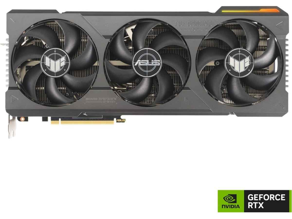 Exoskelett av metall, Trehövdad fläktdesign, NVIDIA DLSS 3, ARGB Lighting, Axial-tech Fan Design, 3,65-facks kylfläkt, Fläktar med dubbla kullager, AUTO-EXTREME-teknologi, NVIDIA Ada Lovelace GPU-teknik, Kondensatorer i försvarsklass, 3:e gen ray tracing-kärnor, 4:e gen tensor-kärnor, Stöd för ASUS AURA SYNC
