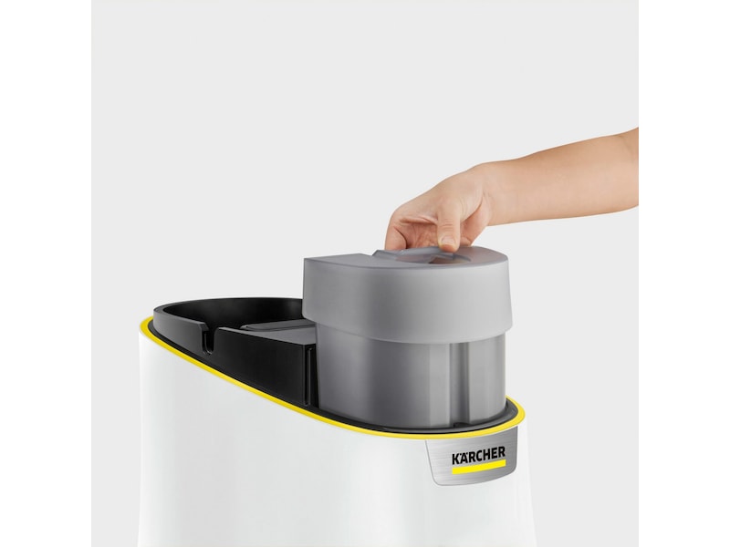 Tanken är avtagbar och kan fyllas på kontinuerligt, vilket garanterar oavbruten rengöring.