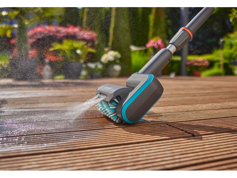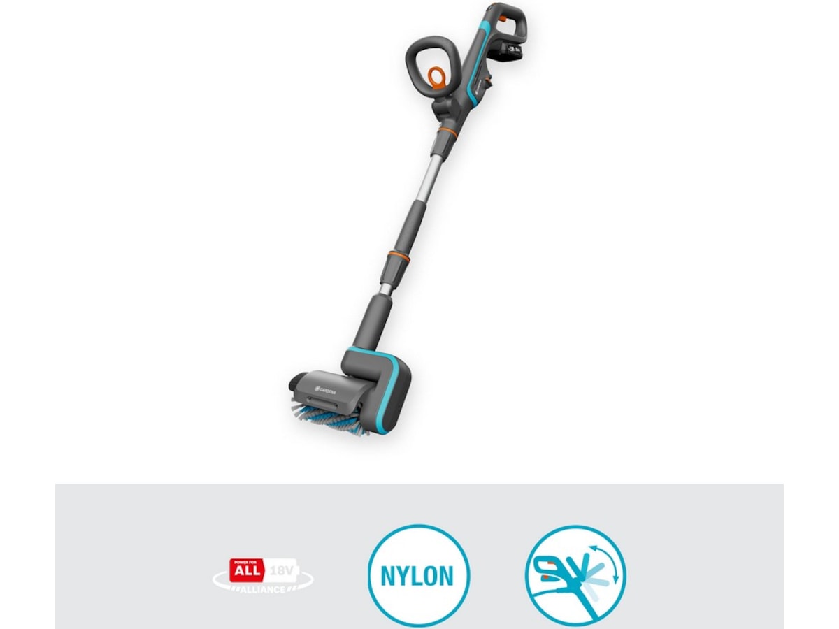 GARDENA Terrassborste P4A 18V 2,0Ah set för enkel rengöring av trä, WPU, sten, terrasser, däck och ojämna ytor.