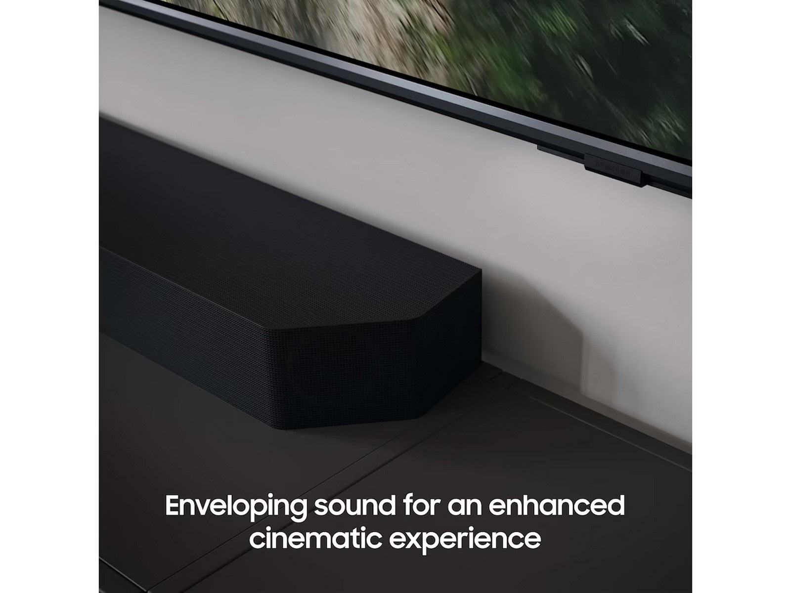 Samsungs soundbar kalibrerar ljudet utifrån en analys av rummet från Samsung-tv:n, vilket ger ett tydligt och omslutande ljud som är anpassat efter rummet.