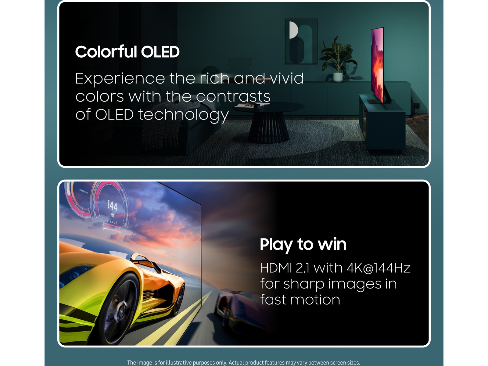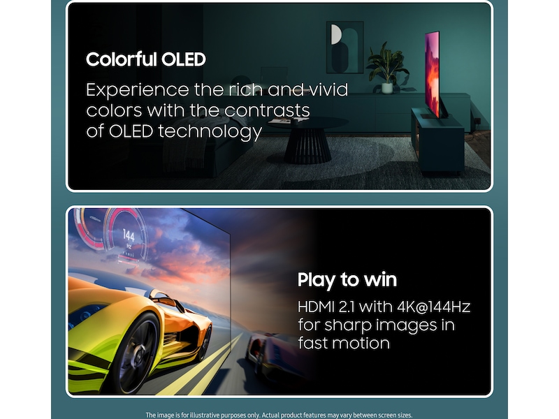 Upplev klara och levande färger med OLED teknikens djupa kontraster.