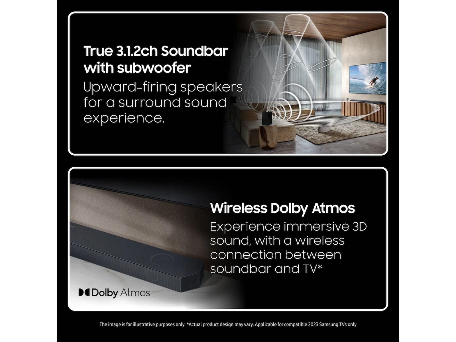Objektbaserade ljudformat kan nu användas trådlöst med Samsung Soundbar. Njut av detaljerat 3D-ljud med Dolby Atmos-innehåll - helt trådlöst.