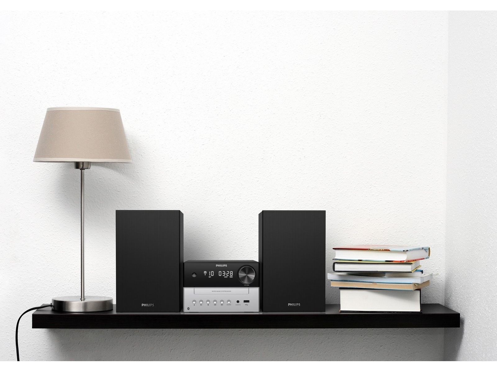 Hör mer från varje podd och spellista du streamar. Återupptäck din CD-samling eller lyssna på radion. Detta klassiska mikrosystem låter bra i mindre rum, och du kan ansluta andra källor via USB eller ljudingång.