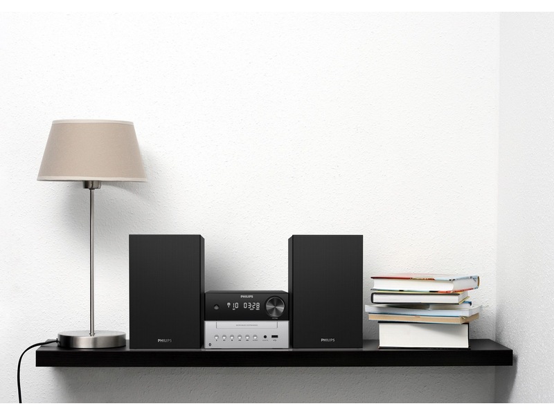 Detta eleganta mikrosystem låter dig streama spellistor och mer via Bluetooth, spela CD-skivor och lyssna på FM-radio. Den digitala radiotunern med 10 förinställningar ger tydlig mottagning och CD-spelaren kan läsa MP3-CD-skivor och inspelade CD-skivor.
