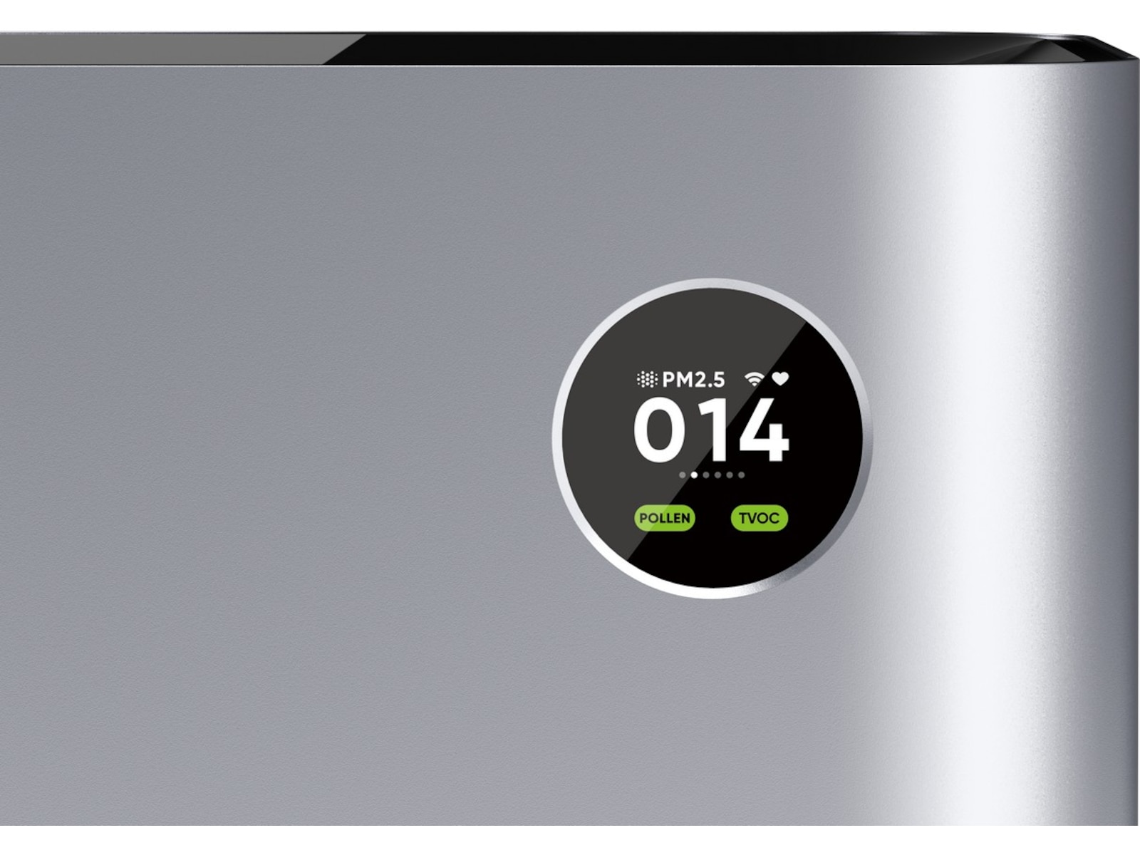 Luftrenaren har ett utvecklat luftsensorsystem som testar luftkvaliteten i hemmet på fem olika luftförhållanden och ämnen (PM10, PM2,5, TVOC, temperatur och luftfuktighet). På luftrenarens OLED-pekskärm kan du både läsa luftkvalitetsstatistik och växla mellan olika luftreningsinställningar.