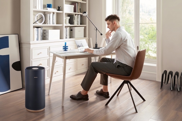 Luftrenaren tar bort oönskade partiklar och lukter i rum upp till 45 m2. Med en flexibel OLED-display kan du enkelt hålla koll på luftens tillstånd och kvalitet.
