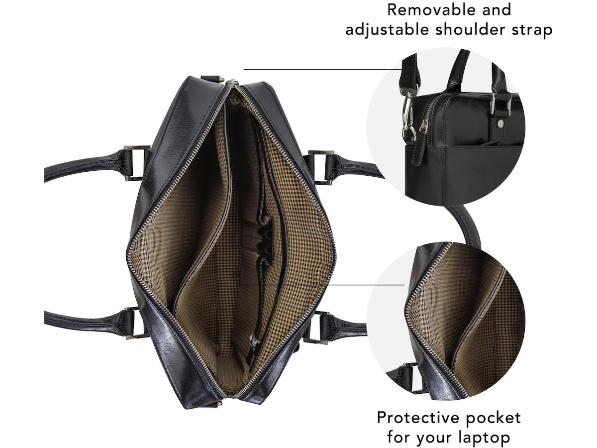 Rosenborg är en klassisk laptopväska med en enkel men funktionell design. Väskan är handgjord av hållbart framställt fullnarvsläder och har ett rymligt huvudfack uppdelat i två sektioner. En av sektionerna är perfekta för din Macbook eller PC, medan den andra sektionen har ytterligare inre fickor för enkel organisation av dina saker.