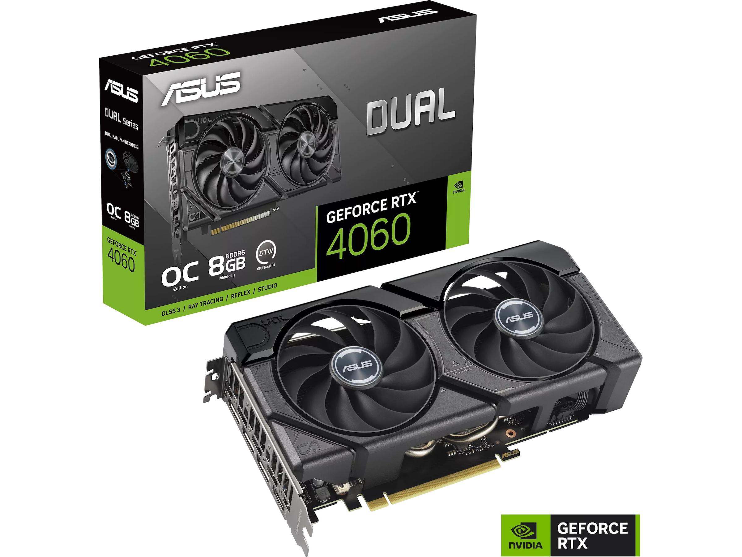 ASUS Dual GeForce RTX™ 4060 EVO OC Edition 8GB GDDR6 med två kraftfulla Axial-tech-fläktar och en skyddande baksida för bred kompatibilitet
