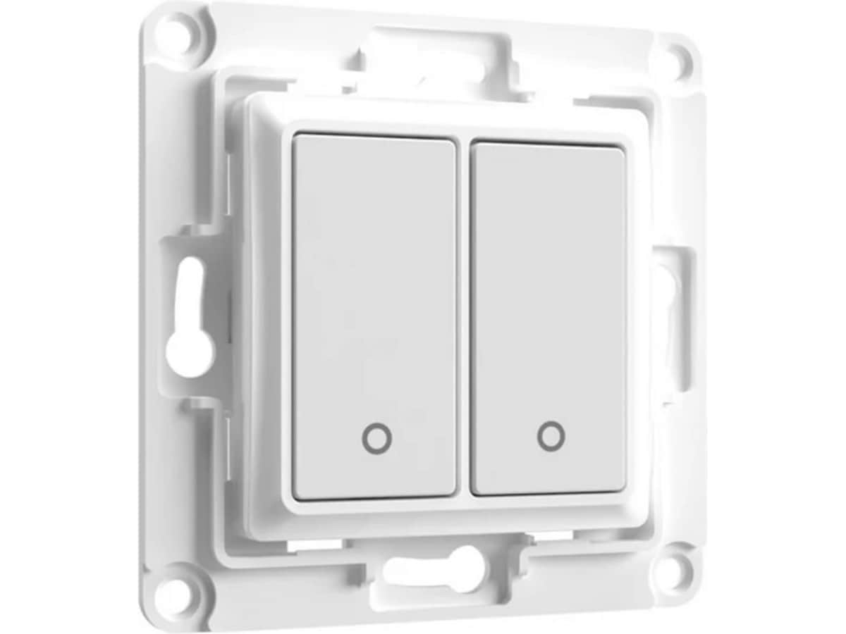 Shelly Wall switch 2 2-knapps Shelly Wall Switch för smarta reläer Omkopplaren med 2 knappar levereras med fästbara relähållare.