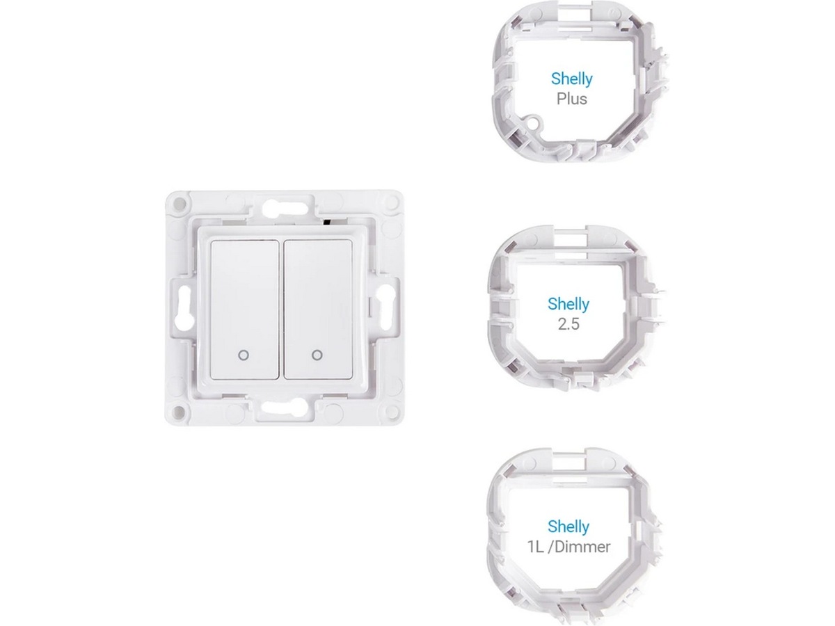 Relähållare 1 - Shelly 2,5 Relähållare 2 - Shelly Plus Series Relähållare 3 - Shelly 1L / Shelly Dimmer 2 * Shelly väggramar och reläer säljs SEPARAT.