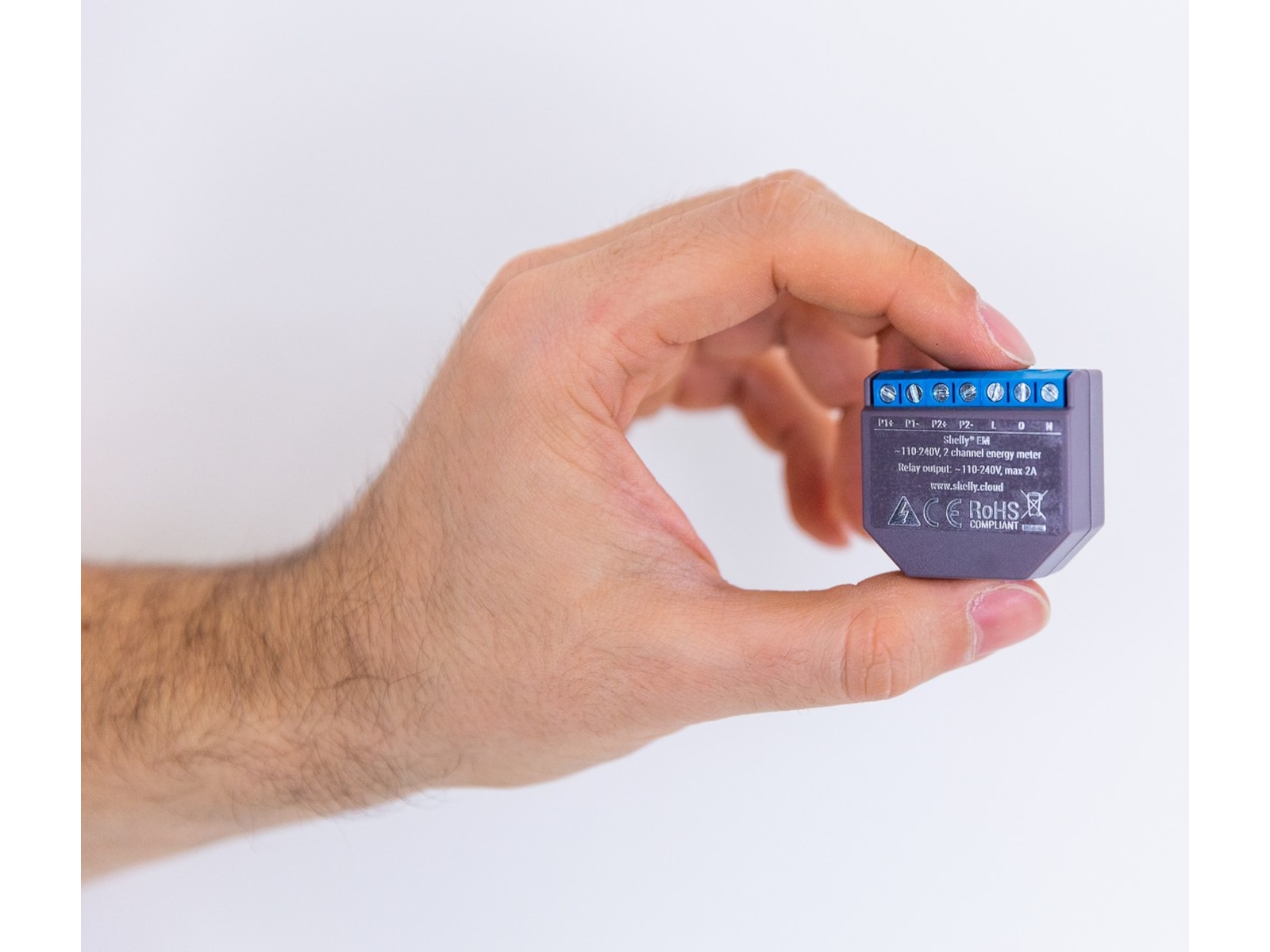 Shelly EM är en Wi-Fi-driven energimätare med kontaktorkontroll. Det låter dig samtidigt övervaka förbrukningen av alla hushållsapparater, elektriska kretsar och kontorsutrustning (lampor, kraftledningar, säkerhetssystem, värme, kyla, etc.) i 2 kretsar på samma fas eller individuellt. Shelly EM är perfekt för att mäta solenergiproduktion, övervaka hushållens förbrukning och styra tyngre apparater.