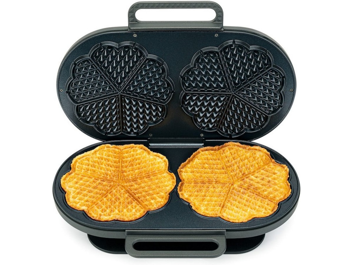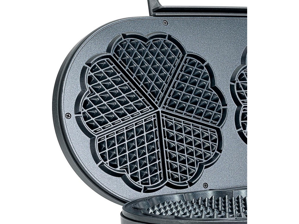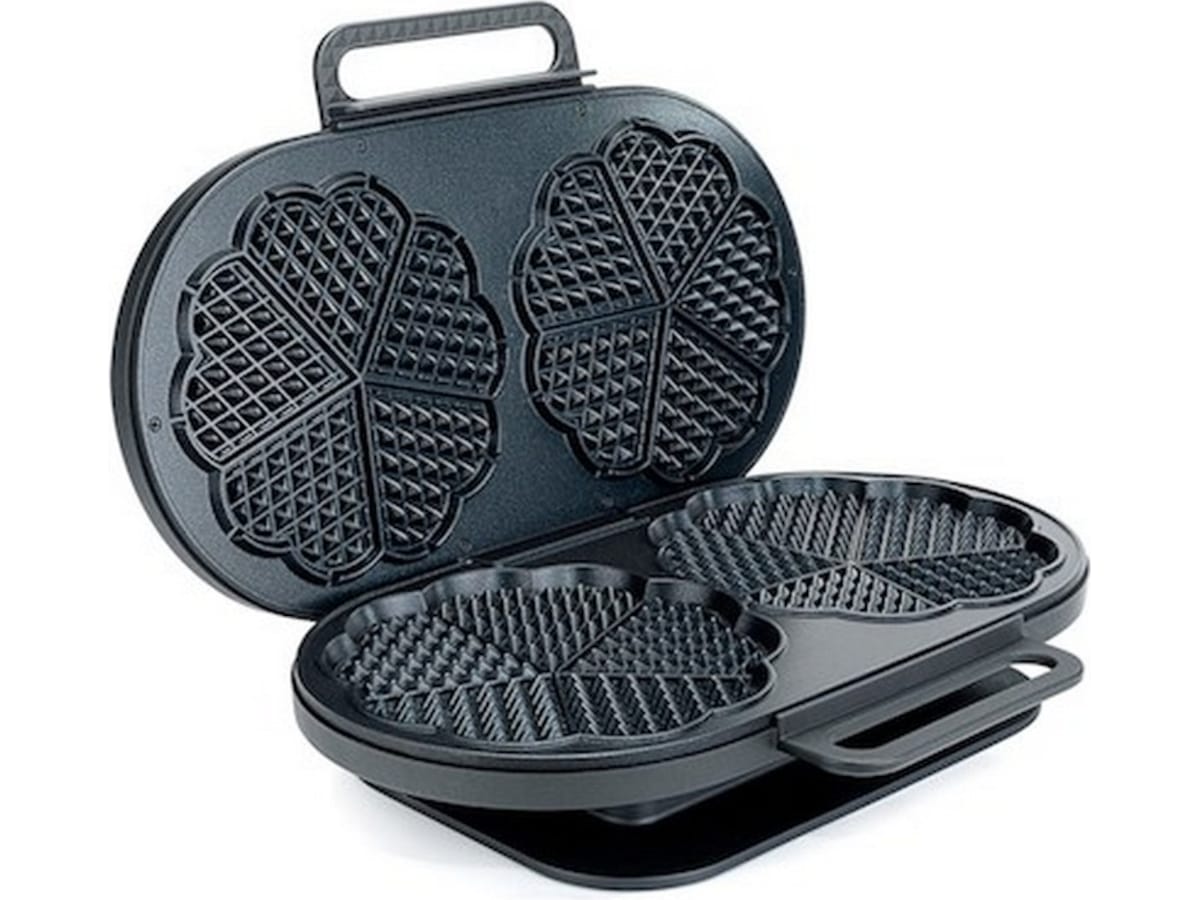 Double Joy våffeljärn gör 10 stora, krispiga och goda våffelhjärtan med en diameter på 20 cm.
