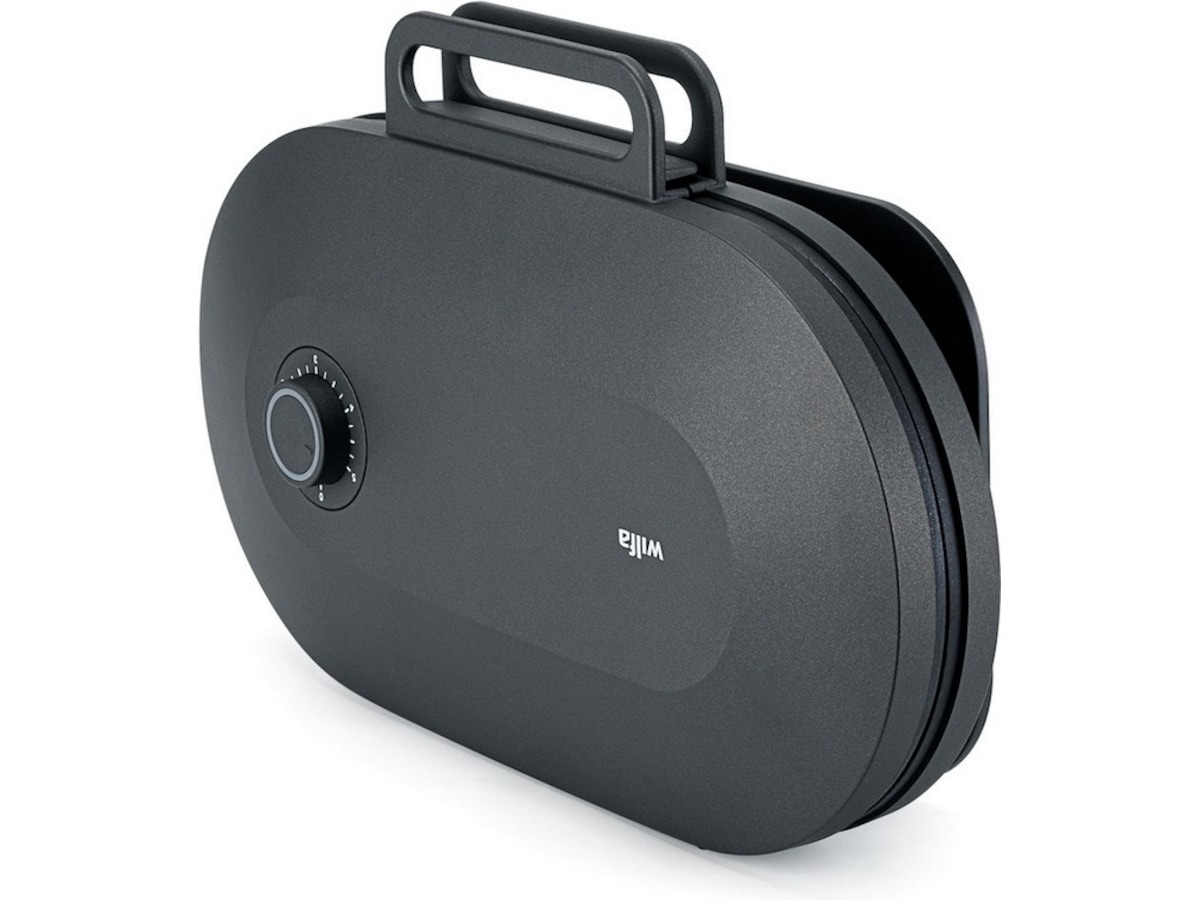 Joy våffeljärnet är lätt att placera i köksskåpet då det kan förvaras upprätt vilket också sparar plats. Höjden på våffeljärnet stående är 25,5 cm.