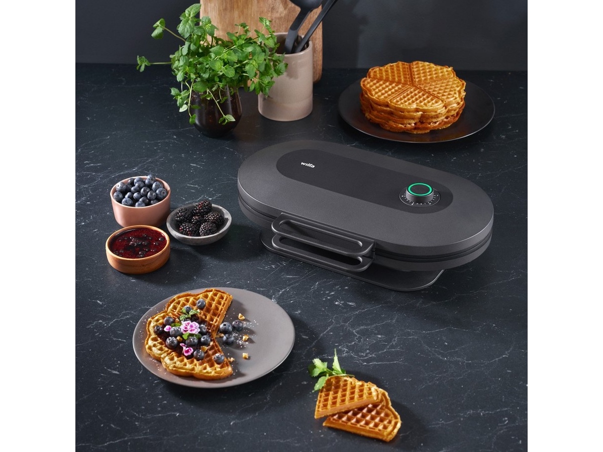 De unika koniska plattorna är designade för att fördela smeten jämnt, så att våfflorna blir perfekt stekta över hela våffelplattan.
