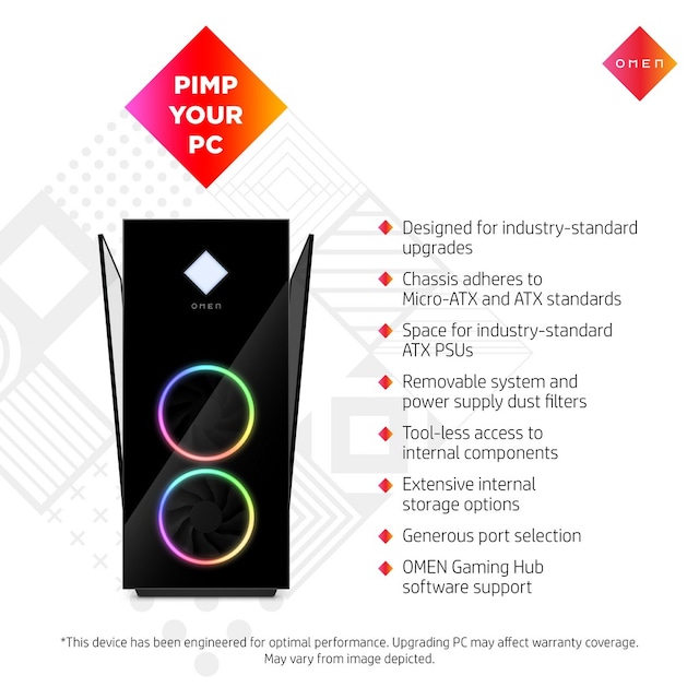 Anpassa och uppgradera den precis som du vill med OMEN Gaming Hub samt verktygsfri åtkomst till interna komponenter .