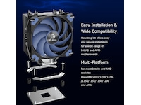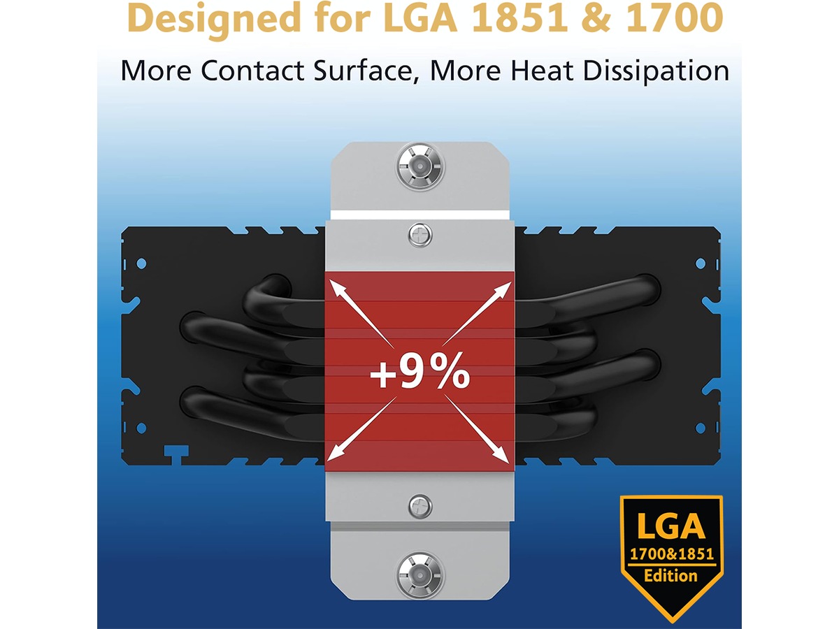 4 högpresterande kopparvärmeledningar med Direct Touch Technology (DTT) för effektiv värmeavledning. Överlägsen rotordesign med Hydro Dynamic-lager för förbättrad smörjning, minskat fläktljud och förlängd fläktlivslängd på upp till 40 000 timmar. Det säkerställer att kylaren kan stödja processorer med en TDP på upp till 185 W.