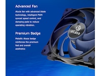 Alucia-fläkt med avancerad bladteknologi, intelligent PWM-synkroniserad hastighetskontroll och dämpningsdynor för att minska driftsvibrationer.