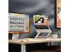 Bär din Curve Flex till kaféet och placera stativet som en praktisk skrivbordskil. Du kan justera både höjden och vinkeln på ditt tangentbord. När du kommer tillbaka till kontoret, höj Curve Flex till sin maxhöjd och din MacBook-skärm + webbkamera är i ögonhöjd och lika hög som din externa bildskärm!