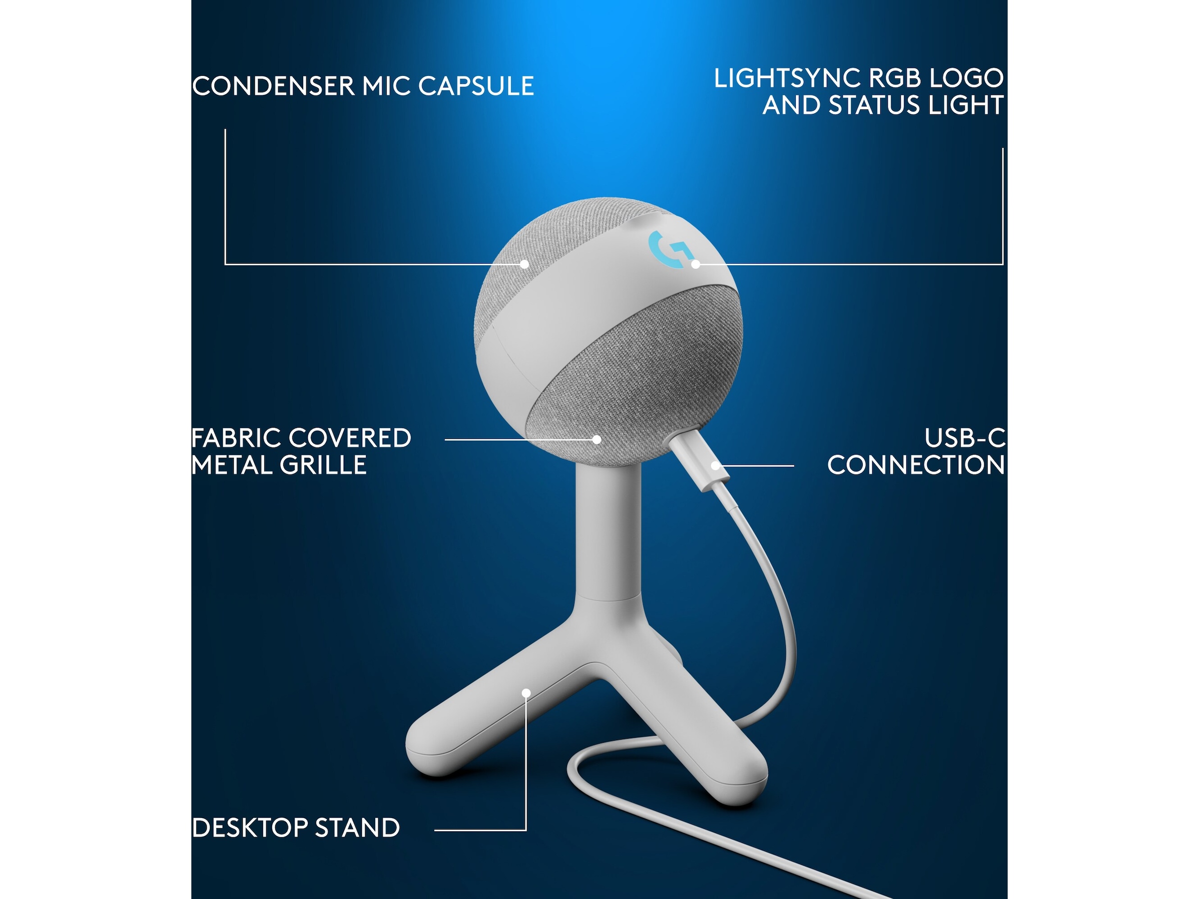 Logitech G Yeti Orb är en förstklassig spelmikrofon med LIGHTSYNC RGB, en kondensorkapsel optimerad för spelströmning och Blue VO!CE-förinställningar som ger förstklassig ljudprestanda och användarvänlighet via en enkel USB-anslutning.
