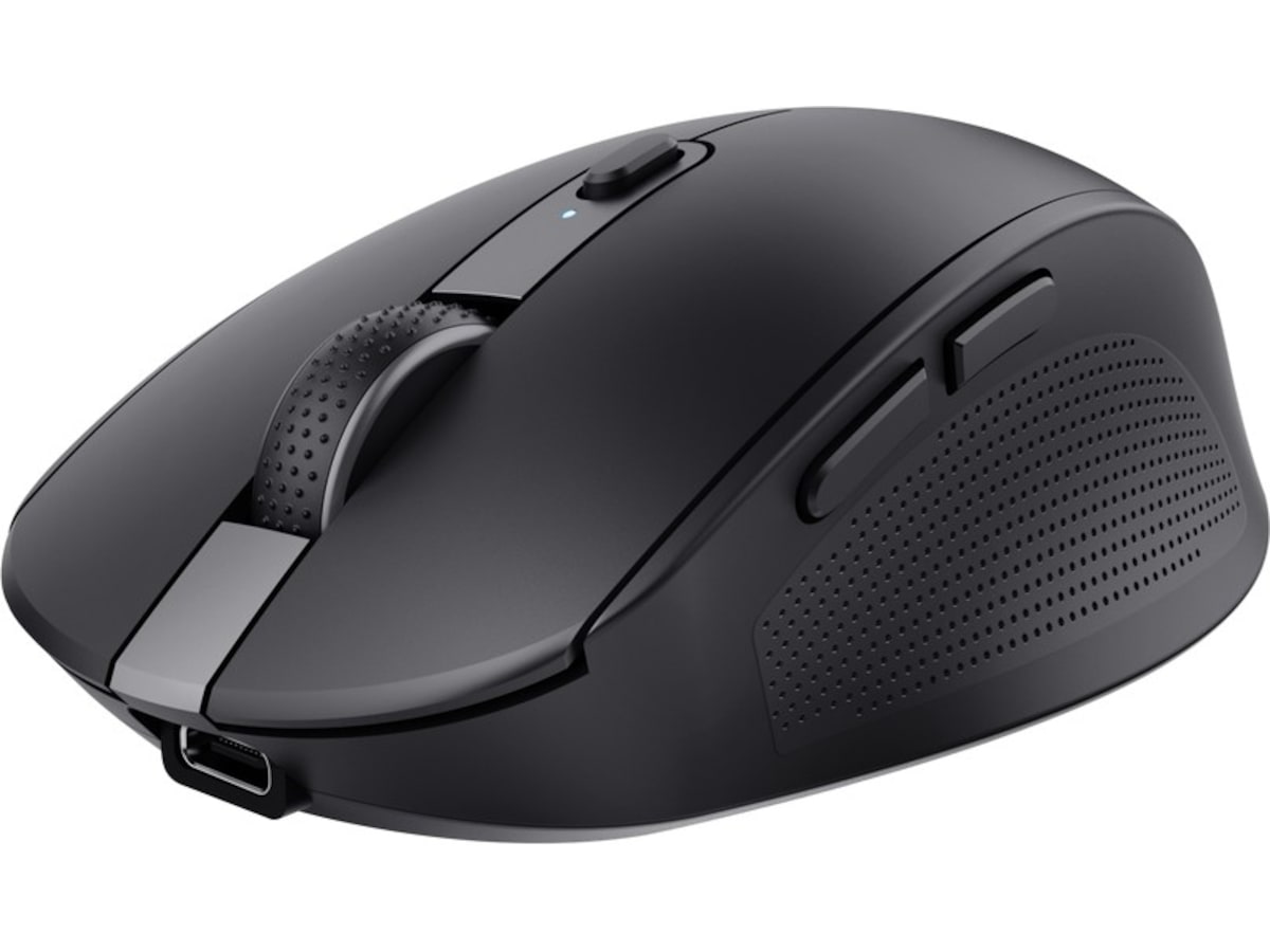 Kompakt trådlös mus med multi-enhetsanslutning och tysta knappar