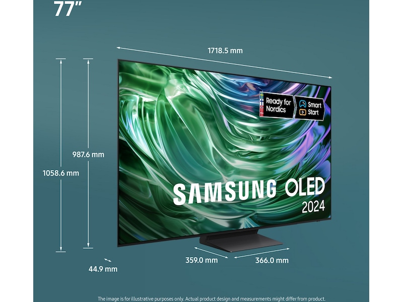 *Utbudet av appar och tjänster varierar över tid, då gamla kan upphöra och nya tillkomma. Vissa appar och tjänster kräver abonnemang eller engångsköp för att kunna användas. Samsung kan visa reklam och kampanjer på Smart TV-gränssnittet och applikationer. Skärmspegling fungerar endast när TV och mobil är påslagna och anslutna till samma WiFi-nätverk. Apple och AirPlay är varumärken som tillhör Apple Inc., registrerade i USA och andra länder/regioner. AirPlay kräver iOS 12.3 eller senare eller macOS 10.14.5 eller senare.