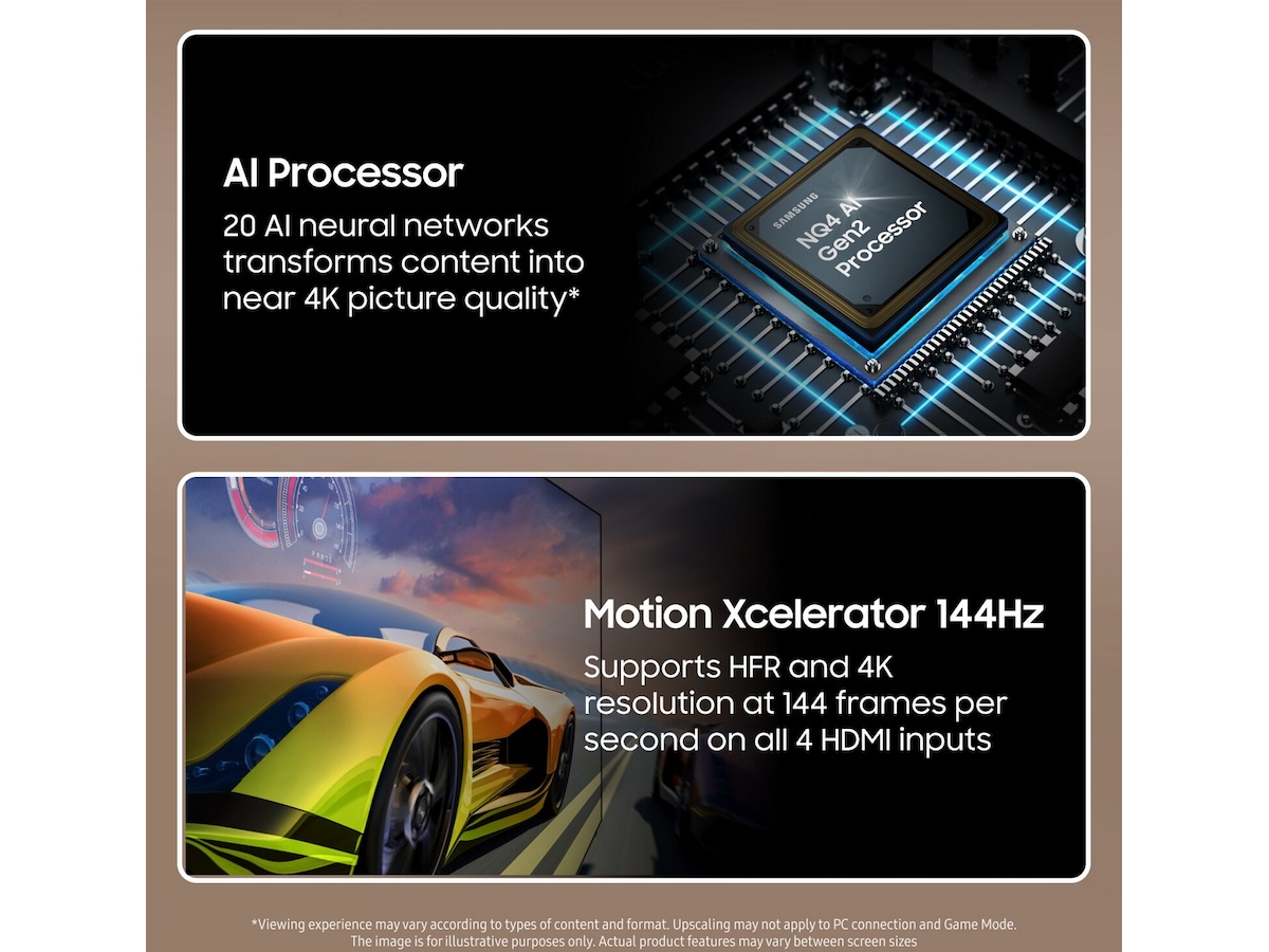 Kraftfull NQ4 AI Gen2-processor använder AI-teknik som anpassar innehåll till 4K och justerar bild och ljud efter rummet.