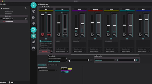 Spel, musik, systemljud, videosamtal, webbläsare, headset, ljudgränssnitt och mikrofoner kan enkelt läggas till BEACN Mix Create-rattar. Ställ in anpassade undermixar, dirigera ljud till och från dina hörlurar, chattmikrofonutgång och sändningsström, definiera anpassade ljudavstängningslägen, spara profiler och mer med vår kostnadsfria BEACN-app.