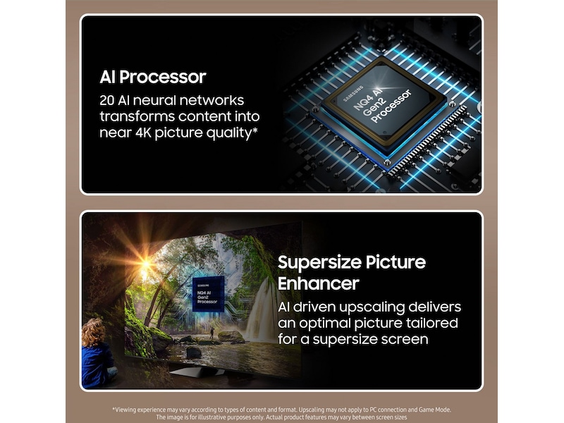 Kraftfull NQ4 AI Gen2-processor använder AI-teknik som anpassar innehåll till 4K och justerar bild och ljud efter rummet.
