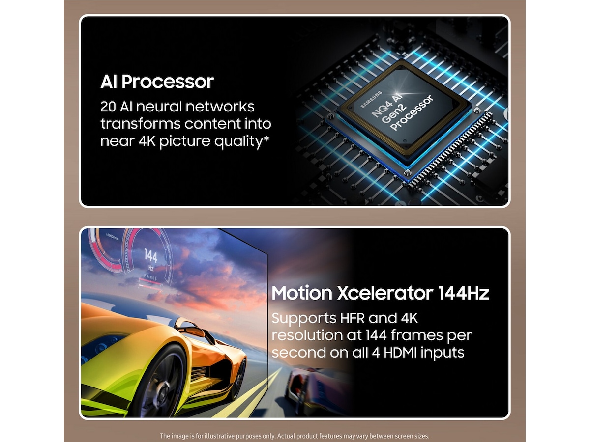 Kraftfull NQ4 AI Gen2-processor använder AI-teknik som anpassar innehåll till 4K och justerar bild och ljud efter rummet.