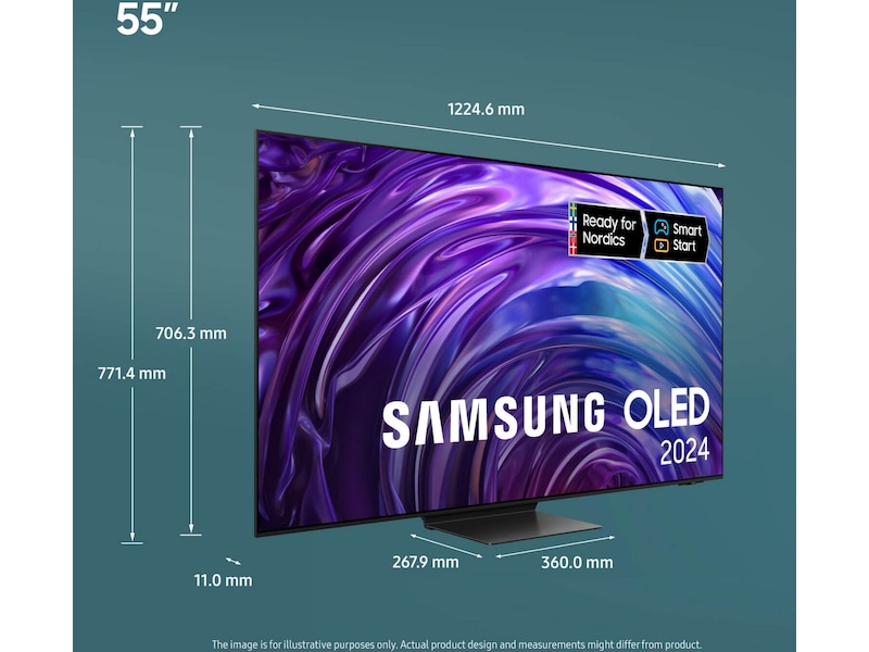 *Utbudet av appar och tjänster varierar över tid, då gamla kan upphöra och nya tillkomma. Vissa appar och tjänster kräver abonnemang eller engångsköp för att kunna användas. Samsung kan visa reklam och kampanjer på Smart TV-gränssnittet och applikationer. Skärmspegling fungerar endast när TV och mobil är påslagna och anslutna till samma WiFi-nätverk. Apple och AirPlay är varumärken som tillhör Apple Inc., registrerade i USA och andra länder/regioner. AirPlay kräver iOS 12.3 eller senare eller macOS 10.14.5 eller senare.