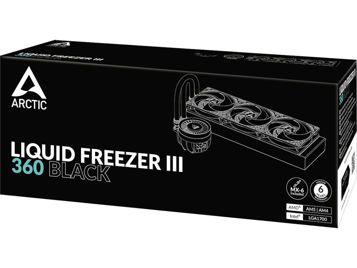 Liquid Freezer III är redo för omedelbar användning tack vare sina förinstallerade kylarfläktar i push-konfiguration. Fläktkablarna är integrerade i manteln på slangarna så att endast en kabel behöver anslutas till moderkortet. Med MX-6 termisk blandning som ingår i leveransen har du allt du behöver för snabb och enkel installation.