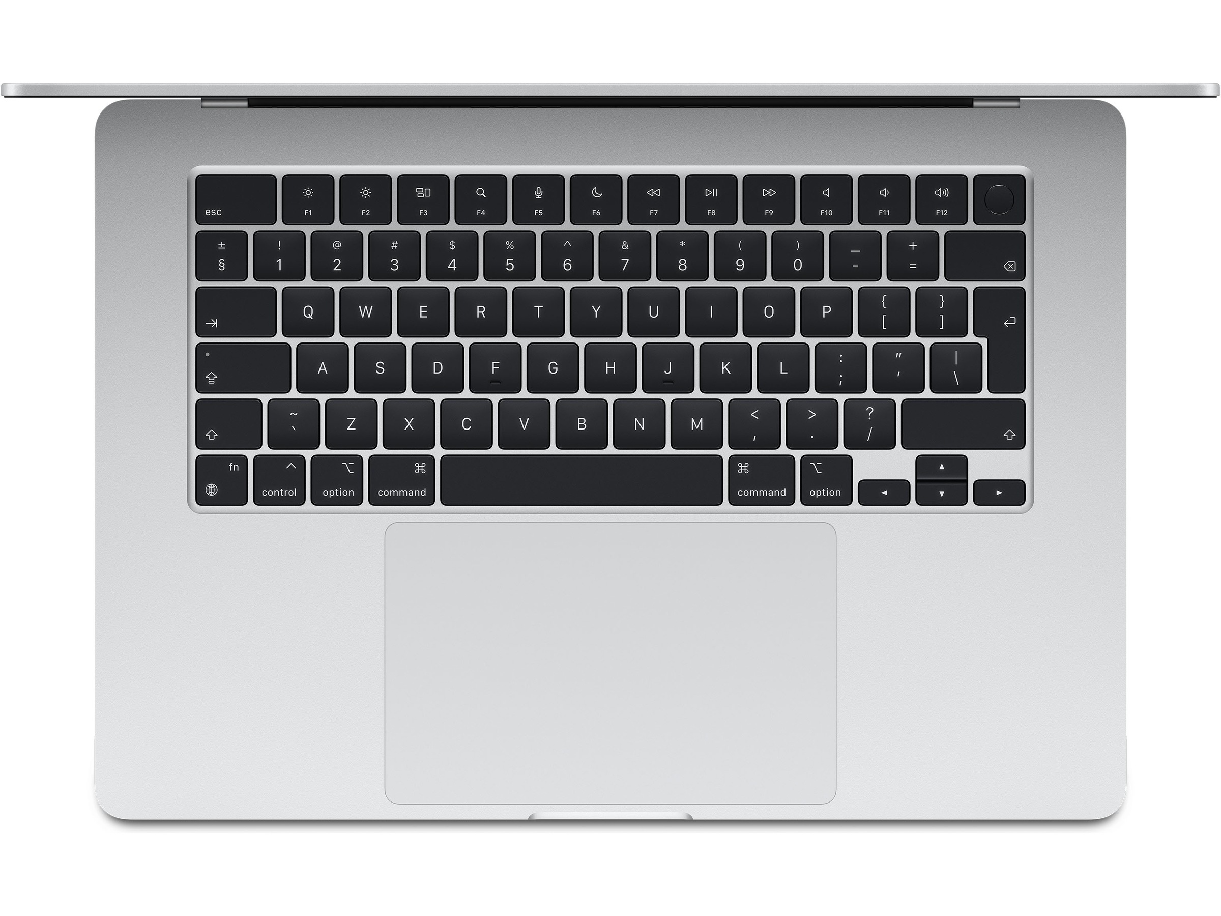 2) Skärmen på 15-tums MacBook Air har rundade hörn upptill. Skärmen mäter 15,3 tum på diagonalen i en rektangel. (Det faktiska synliga skärmområdet är mindre.)