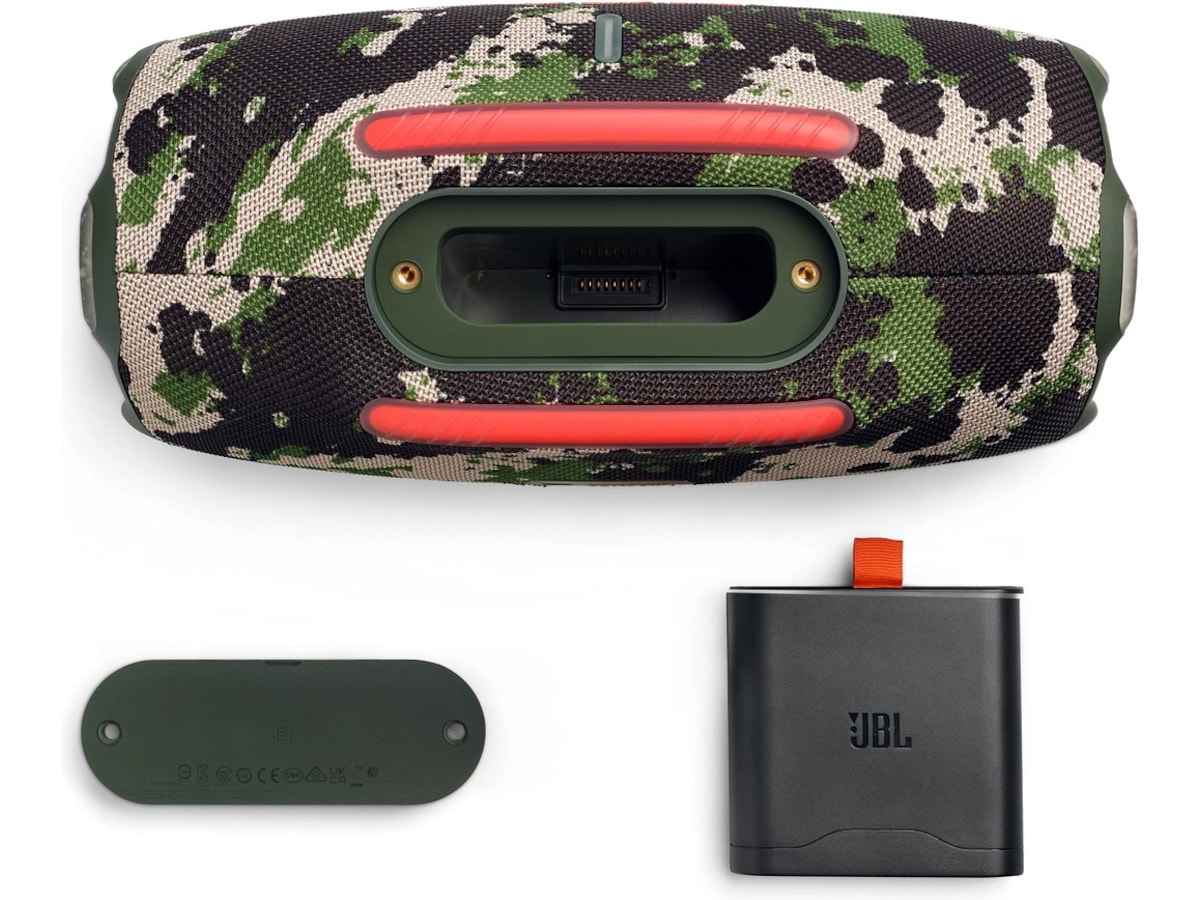 Det är dags att leva högt! JBL Xtreme 4 bärbara och vattentäta högtalare levererar enormt JBL Pro-ljud på nästa nivå med fantastisk dynamik, även på högsta volym, tack vare två kraftfulla bashögtalare och två diskanthögtalare. Dubbla pumpande passiva JBL-drivrutiner ger dig djupare bas som rör dig.