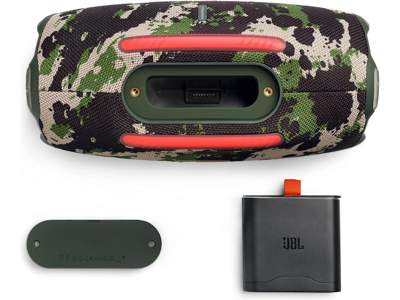 Det är dags att leva högt! JBL Xtreme 4 bärbara och vattentäta högtalare levererar enormt JBL Pro-ljud på nästa nivå med fantastisk dynamik, även på högsta volym, tack vare två kraftfulla bashögtalare och två diskanthögtalare. Dubbla pumpande passiva JBL-drivrutiner ger dig djupare bas som rör dig.