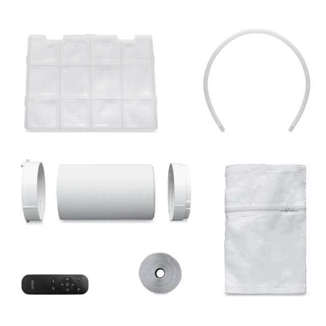 North kommer med ett komplett tillbehörsset bestående av en avloppsslang med 2 kopplingar, ett vattenavloppsrör, PET-filter och flexibel fönstertätningssats. Detta set kan fästas på alla typer av fönster med en maximal omkrets på 4 meter.